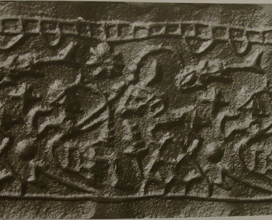 | Description of the seal image | The scene is framed by a ladder border at the top and a line border at the bottom. A half-kneeling hunter (archer) wearing a tunic with a fringed lower edge aims his bow at a wild goat (ibex) depicted on a mountain. The latter is indicated by a scaly pattern. Between the two figures is an ear of wheat ('bottle-brush' tree) below an eight-rayed star, while behind them, arranged in a column are two crescent moons, a fish, a cross or four-rayed star, and a globe. |