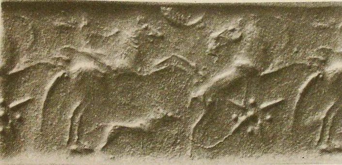 | Description of the seal image | A horse-riding archer hunts a rampant wild goat (ibex) with his hunting dog (hound). Between the hunter and his prey is a crescent moon in the sky, while below the wild goat is a rosette-like symbol (or star) with five globes. |