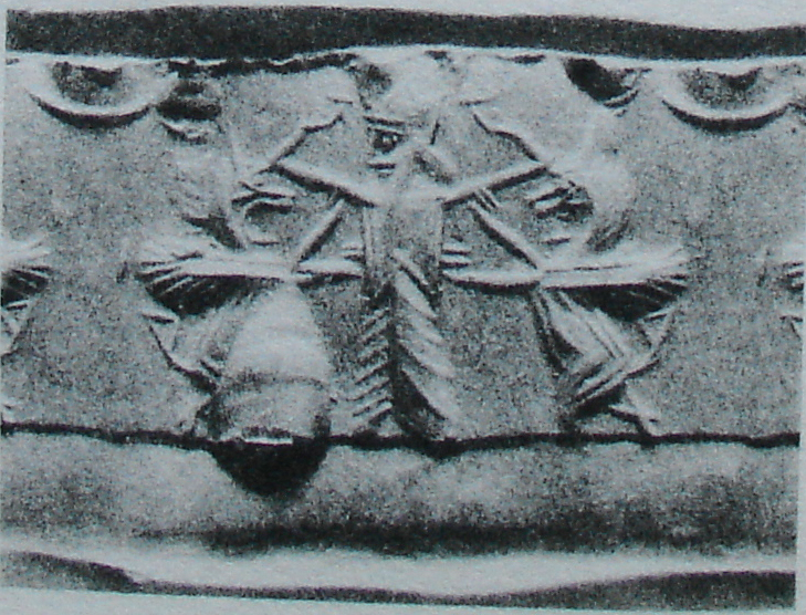 | Description of the seal image | The royal hero grasps a rampant lion-dragon on either side, each by the horn. He wears a dentate crown (cidaris) and Persian clothing (court robe). Behind the rampant beasts is a crescent moon in the sky. |