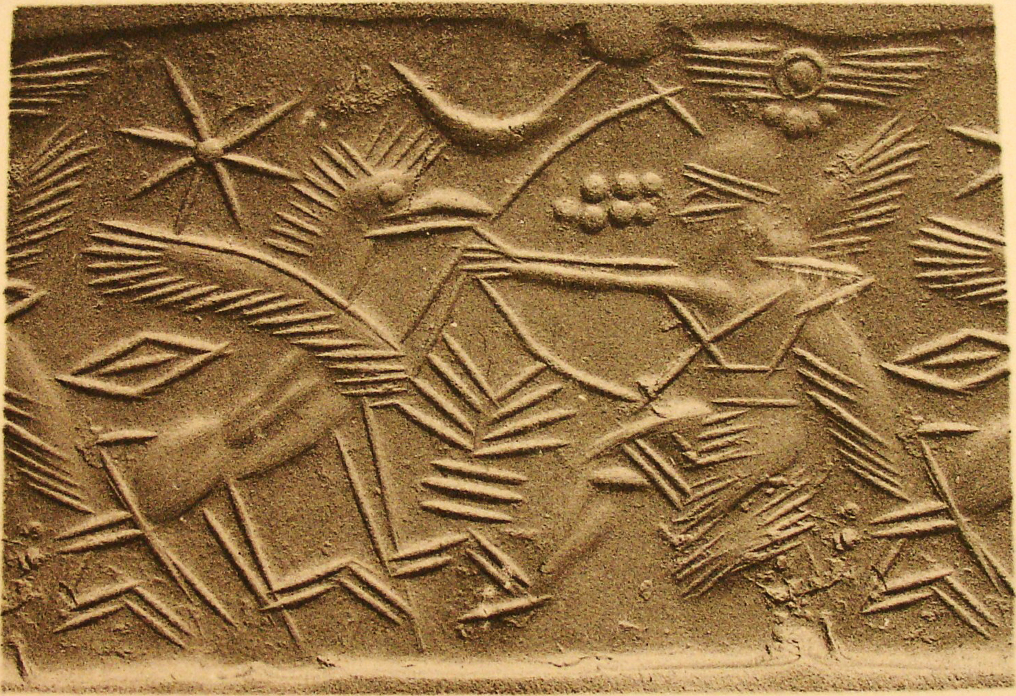 | Description of the seal image | A half-kneeling, bearded winged hero (archer) wearing a long, broad-belted robe with a fringed edge over a short tunic aims his bow at a semi-rampant griffin. Between them is a small stylised plant with pointy leaves below a crescent moon. The Sibitti (Pleiades) appear inside the arc of the bow, above the archer's arm. Above the hybrid creature's wing is an eight-rayed, globe-centred star, while below it is a rhomb. The winged sun-disc appears above the winged hero. |