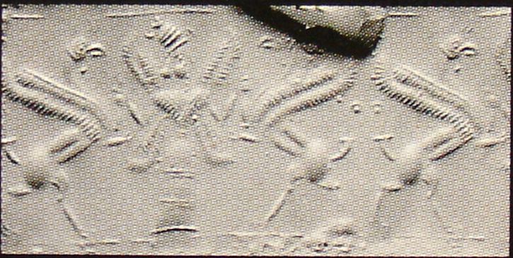 | Description of the seal image | The scene is framed by line borders at the top and bottom. A four-winged goddess (wind demon[?]) grasps a rampant griffin on either side, each by a foreleg. The goddess wears a tall, horned headdress and a long, fringed robe. |