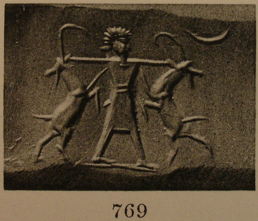 | Description of the seal image | A bearded hero wearing a double-belted tunic grasps two rampant wild goats (ibexes) by their ears. Above the animal on the right is a crescent moon. There is a short ground line below the hero. |