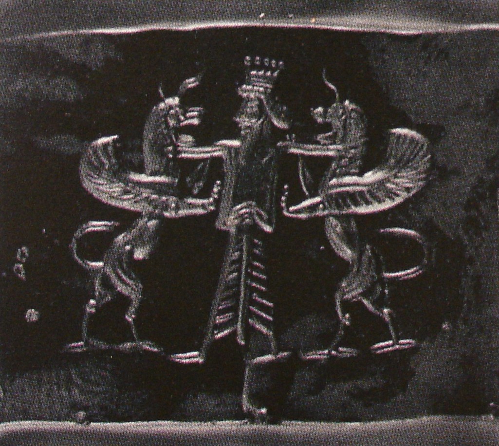 | Description of the seal image | The royal hero grasps a rampant lion-dragon on either side, each by the throat. He wears a dentate crown (cidaris) and Persian cltohing (court robe). The points of the crown are topped by small globes. |