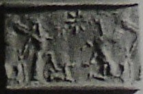 | Description of the seal image | A winged hero holds a sickle sword with one hand while stepping on the back of a reclining animal. He wears a long, open robe. Facing him is a rampant, winged hybrid creature, likely a lion-dragon. Above the reclining animal is an eight-rayed, globe-centred star. |